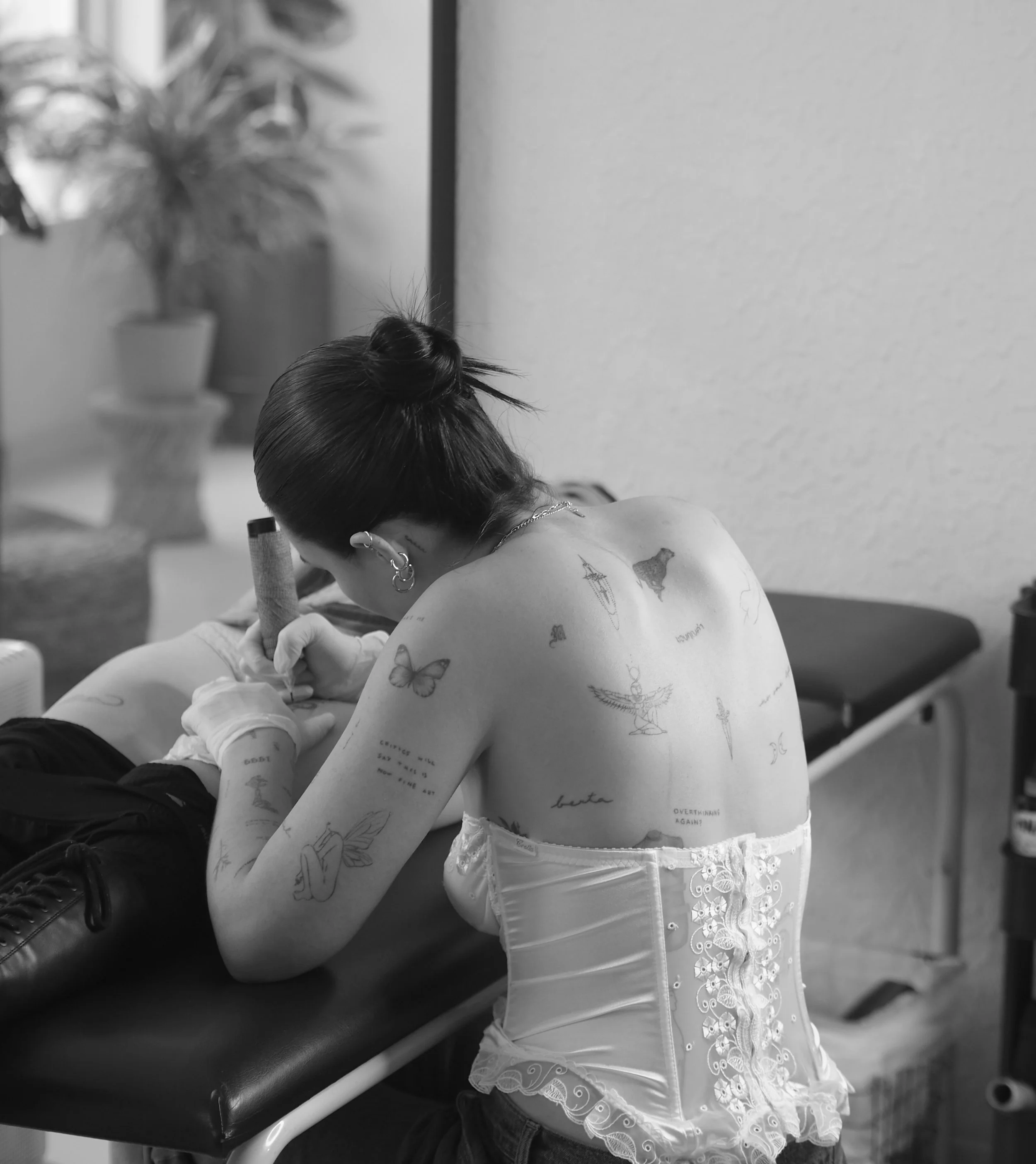 Tattoos may fade or heal lighter. We offer a free touch-up service within six months of the tattoo’s completion. After this period, the tattoo touch-ups will cost 50 euros.